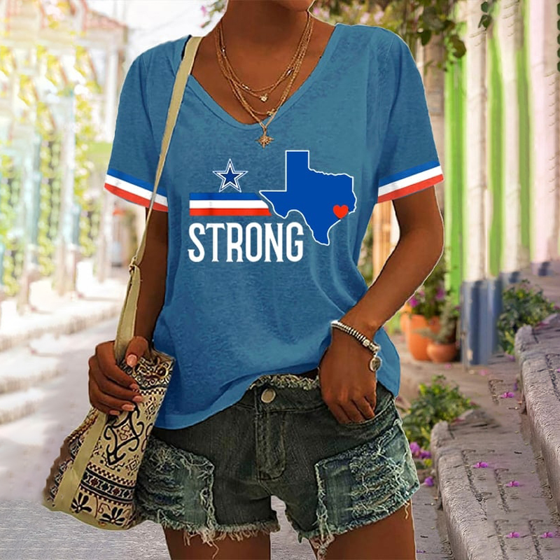 Women's Texas Strong Print V Neck T-shirt